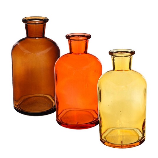 Gekleurde glazen vaasjes riga oranje/bruin Ø7 h.12 cm 3 st.